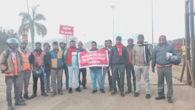 तिल्दा जनपद सदस्य प्रकाश सगरवंशी के नेतृत्व में अडानी पावर प्लांट रायखेडा के श्रमिकों की वेतन की मांगो को लेकर कलेक्टर कार्यालय तक किया पैदल मार्च