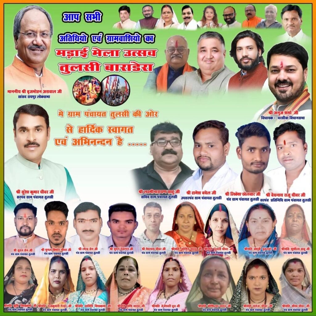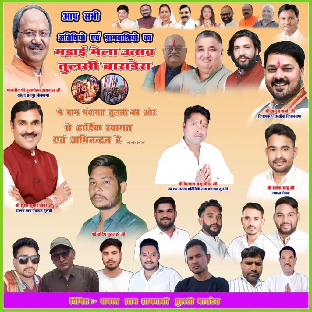श्री सुरेश कुमार धीवर, सरपंच, ग्राम पंचायत तुलसी बाराडेरा, ने बताया कि मड़ई मेला गांव की परंपरा और पहचान से जुड़ा उत्सव है, जिसमें सभी वर्गों की सहभागिता सुनिश्चित की जा रही है।
